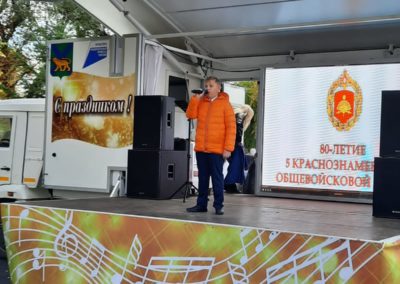 В День 80-летия 5 Краснознаменной общевойсковой армии состоялась концертная программа на территории штаба армии. В рамках торжества с праздничной концертной программой выступили творческие коллективы Централизованной клубной системы. В дальнейшем артисты представили песни разных жанров: военно-патриотического, гражданского звучания, лирические и эстрадные композиции, составляющие концертную программу, так же всех присутствующих своим выступлением порадовали не только вокальные, но и хореографические номера. Их горячо приняли зрители, наградившие исполнителей аплодисментами.