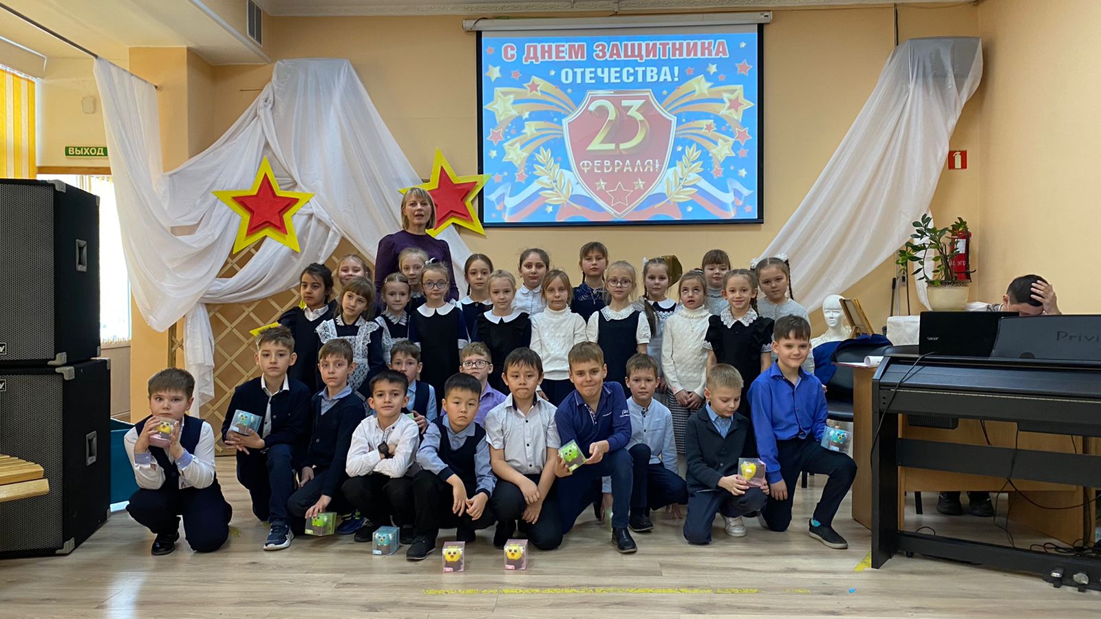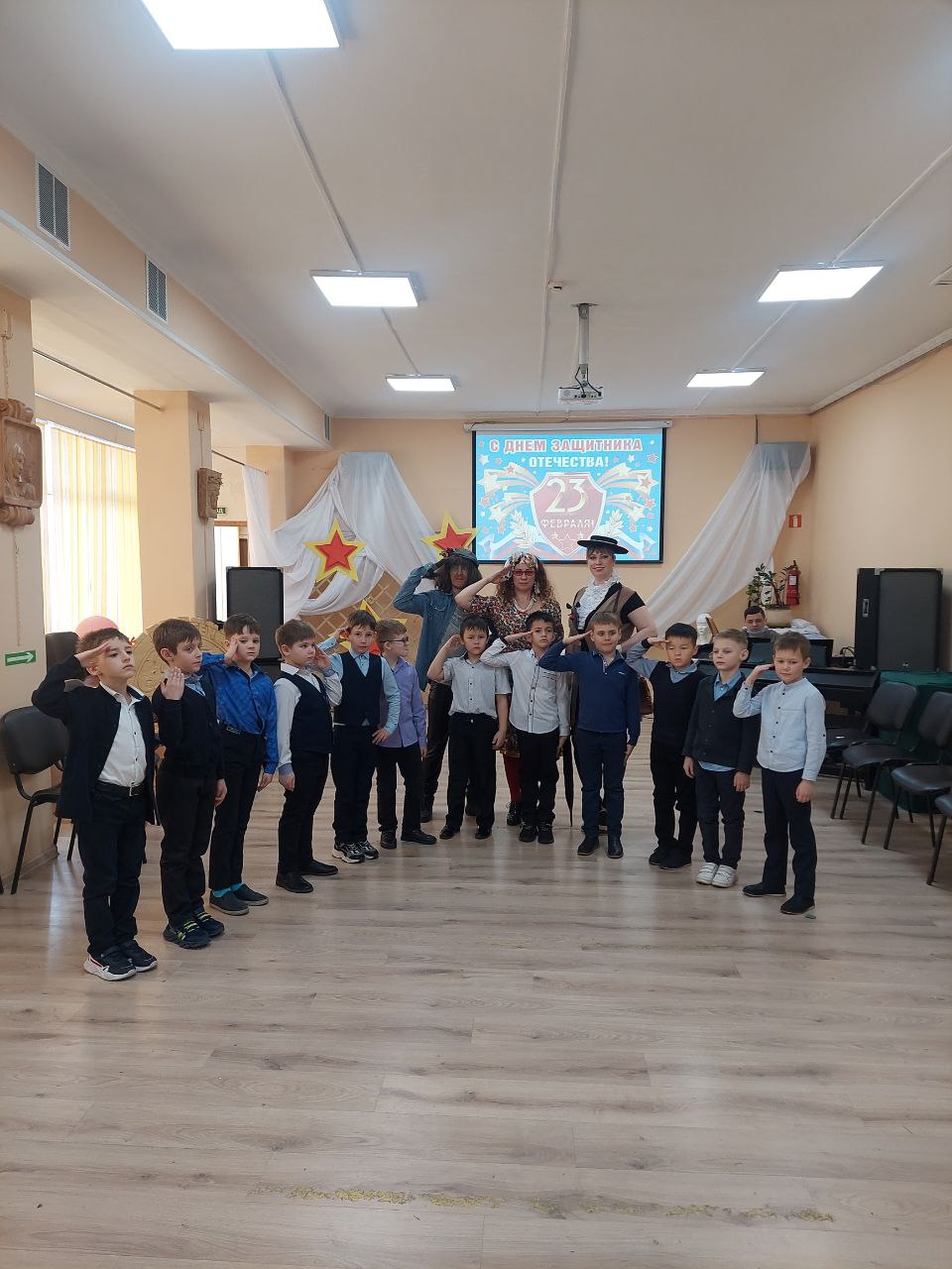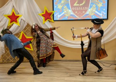 Большим подарком для мальчишек стали поздравительные стихи и подарки от девчонок! На протяжении программы в зале царила праздничная позитивная обстановка, и в завершении, чтобы запомнить этот день на всю жизнь, были сделаны памятные общие фото с персонажами. Покидая Центр народного творчества, дети поблагодарили организаторов за весело проведенное время.