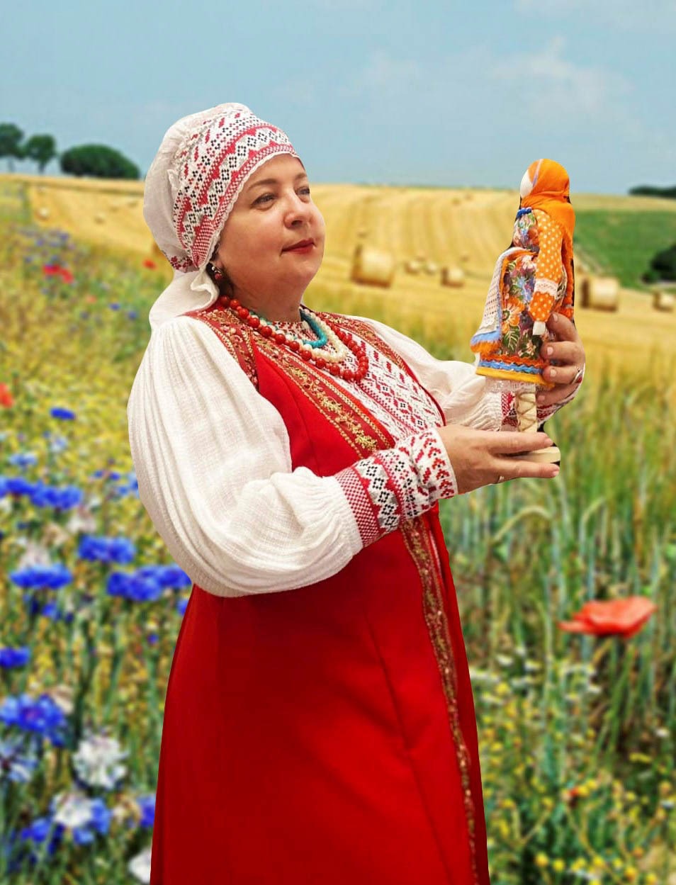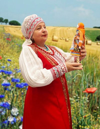 Занимается народной куклой более 10 лет. В своих работах применяет техники создания традиционной народной куклы, занимается изучением народного костюма, пропагандирует традиционные семейные ценности.