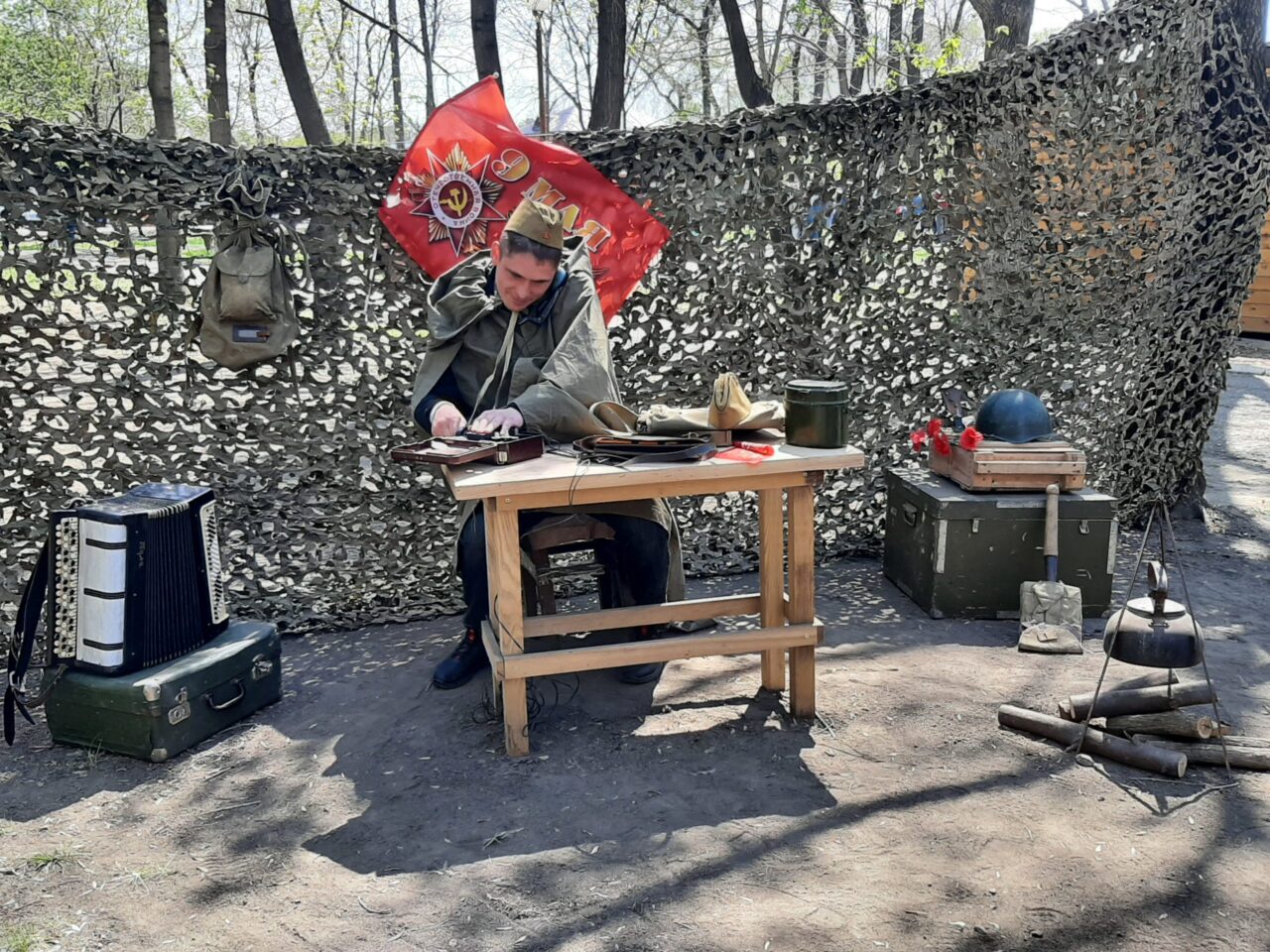 А 9 мая, совместно с ДК «Родина», в городском парке была оформлена фотозона, где все желающие могли надеть плащ-палатку, пилотку или каску и сфотографироваться. Фотозона имела большой успех, жители города высоко оценили и благодарили за интересную задумку и возможность сделать необычные фото для семейного альбома.