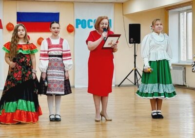 Накануне этой даты в Доме культуры «Родина» прошел праздничный концерт «Россия – одна страна для всех». Это событие собрало жителей всех возрастов: семьи с детьми, молодежь, старшее поколение – всех, кто хотел почувствовать атмосферу праздника и гордости за свою страну.