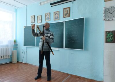На встрече кадетам была представлена широкая панорама казачьего фольклора. Наталья рассказала о различных видах казачьих песен: бытовых, походных, исторических и обрядовых. Дети узнали, что песня сопровождает казака на протяжении всей его жизни — от рождения до смерти. Были разобраны исторические песни, такие как песни о Ермаке и Степане Разине, и обсуждены их глубинные смыслы. Даже не разбирая слова, дети чувствовали трагизм и силу, заложенные в этих произведениях.