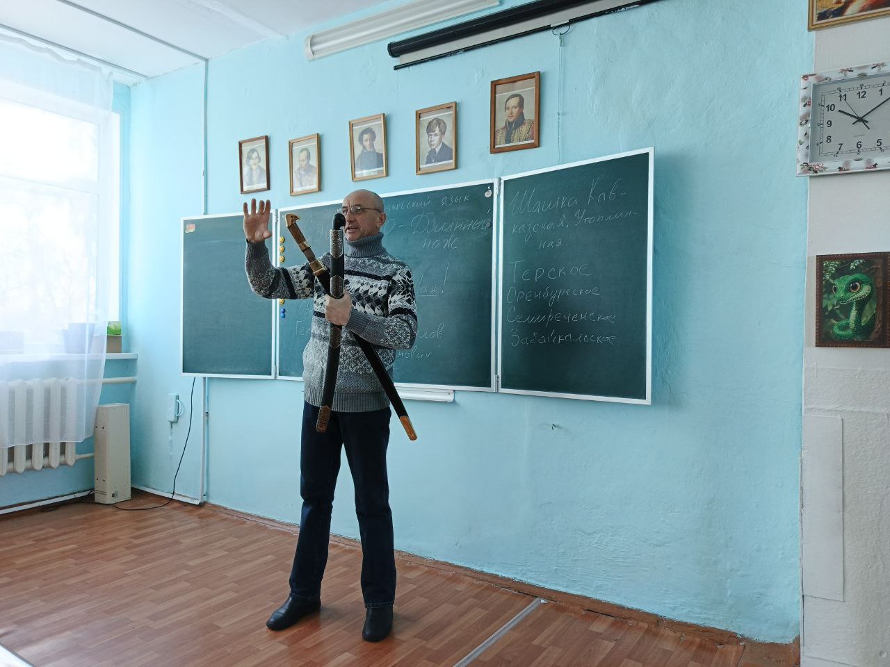 Встреча прошла в тёплой и дружеской атмосфере. Дети активно участвовали в обсуждении, пели песни и наблюдали за элементами фланкировки от их наставника Павла Деркача. Наталья также рассказала о своём Уссурийском театре песни «Душа Атамана» и порекомендовала кадетам найти в интернете и посмотреть их выступление на всероссийском шоу «Поём на кухне всей страной».
