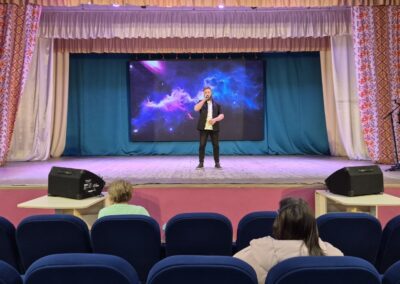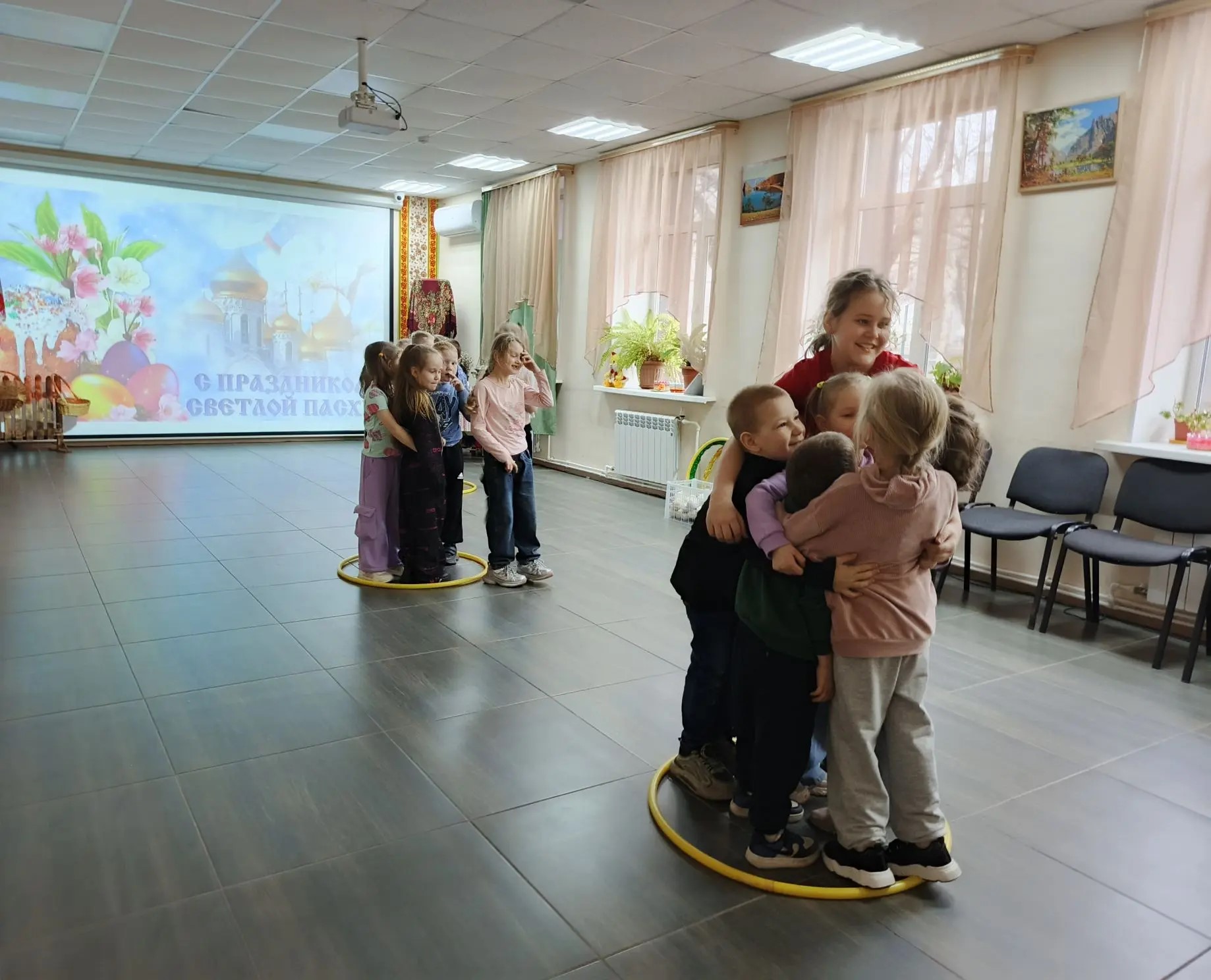С самого начала ребята погрузились в атмосферу тишины и добрых мыслей: в зале звучала спокойная инструментальная музыка, а ведущий рассказал детям о значении Страстной пятницы и о том, как важно быть внимательными друг к другу в преддверии большого праздника — Пасхи.