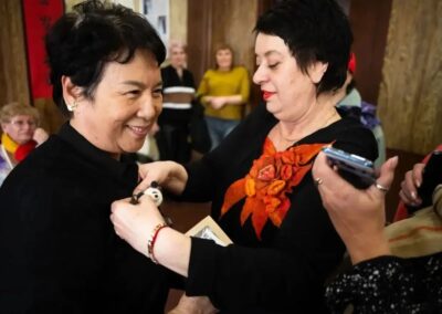 Во время визита в дом престарелых в Харбине Виктория торжественно преподнесла эту брошь директору учреждения. Этот жест, наполненный теплом и уважением, стал ярчайшим примером того, как искусство способно строить мосты между сердцами людей и странами.