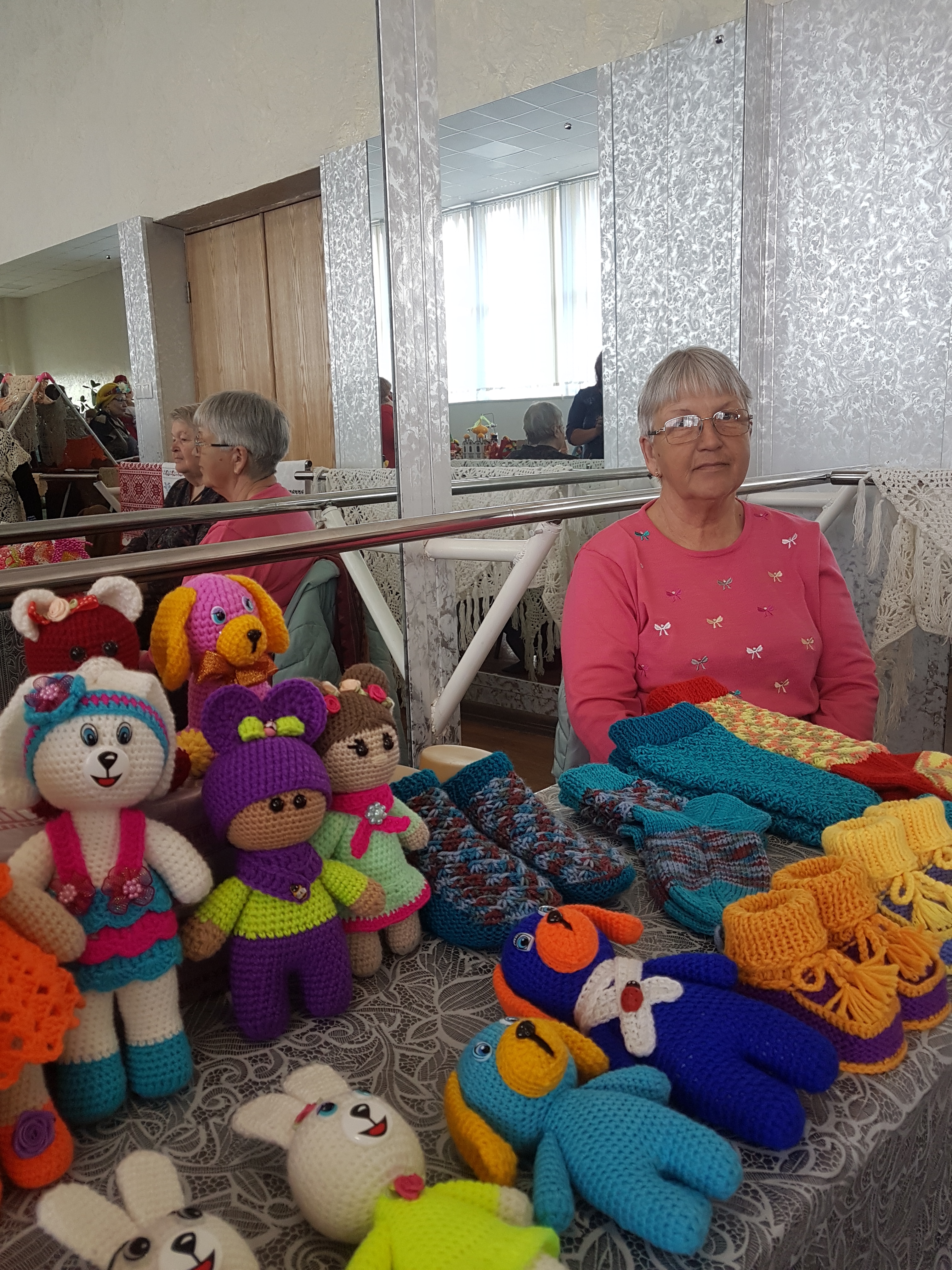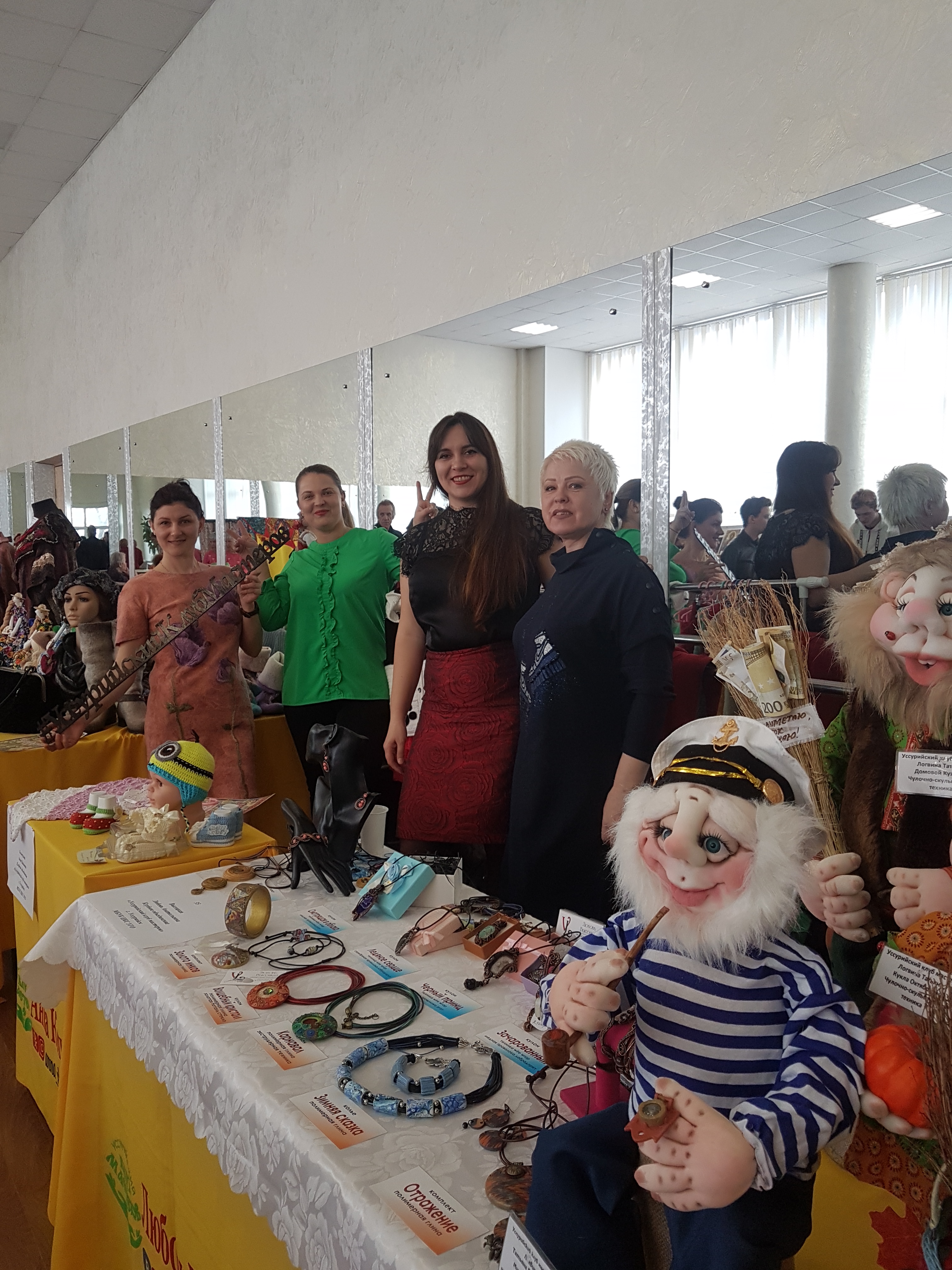 «Уссурийский клуб мастеров» представили 8 мастеров. Разнообразие техник и индивидуальный подход к оформлению конкурсных работ, каждого мастера, невозможно было не заметить. Войлочные изделия Екатерины Ухань, Виктории Соломка и Евгении Бочкаревой настолько не похожи друг на друга, необыкновенно красивые, теплые и уютные. Не выходя из выставочного зала у этих трех мастеров можно сразу одеться. Сапожки от Бочкаревой Е., пальто от Соломка В., шапочку от Ухань Е., добавив украшения от Любови Высоцкой, и вот ты уже самая стильная и модная. Чулочная скульптура нового участника «Уссурийского клуба мастеров» привлекла внимание журналиста «Телемикс», кукла ростом около 1 метра, названная именем внучки- Маруся, изготовленная на «Хоровод Дружбы»2018 года, впервые оказалась на конкурсе, хотя уже запомнилась и полюбилась посетителями выставок и ярмарок. Не оставили равнодушными жюри работы из бисера Наталии Ефимовой и функциональные куклы в технике чулочная скульптура Татьяны Логвиной.